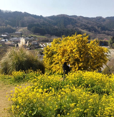 2年かけて整備した黄色い丘は、3年目の2015年春には菜の花でいっぱいに。佐礼谷の「黄色い丘」として、噂が噂を呼び、今ではピーク時で500人の人出があるとか。